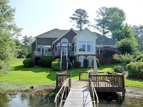Discover The Magic! Family and friends will relax in this waterfront home located on an idyllic cove with calm waters and a wonderful view. A peaceful setting for this 4 bedroom/3 bath beauty with a perfect floor plan for lake living. Just a few of things you will love the gourmet kitchen with gas cook top, master suite with his & her walk in closets, bright tile sun room overlooking the shimmering water, bonus room with full bath, spacious 3 car garage, convenient under house storage, spacious patio and a private dock with sitting area all situated on a private corner lot. Looking for a little more excitement? This home is in a golf course community with NEW clubhouse, restaurant, pool and tennis facility! The fun never ends!