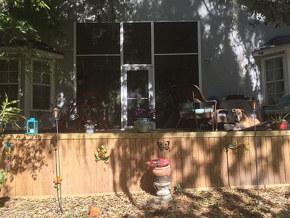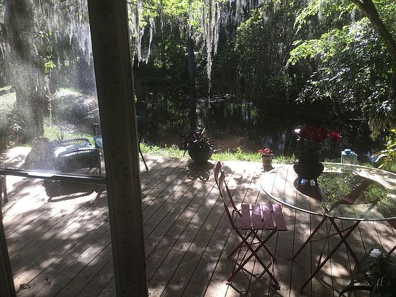 Home exterior newly painted and new gutters added. New roof architectural shingles, AC unit replaced in 2015 with 5 star energy efficient larger capacity AC unit. New custom Kitchen cabinets and butchblock countertops. Porcelain tile floors in main areas with engineered hardwood floors in bedrooms. 2 master bedrooms with bay windows and 2 walk-in closets. Wall to wall sliding glass doors open to screened in porch. New Large 21x12 attached deck and Pergola out back. Backyard on a creek with wooded area behind that will never be built on. Corner lot.