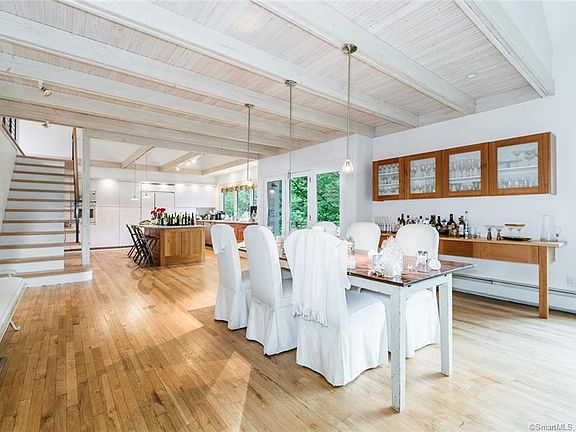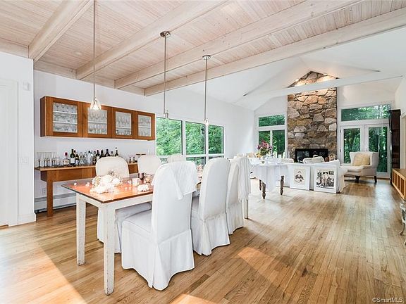 A RARE OFFERING WITH MESMERIZING WATERFRONT VIEWS, END OF QUIET CUL DE SAC-Embracing over an acre of beautifully landscaped, pond-front home located in Old World Charm & Historic Southport lying within 1 hr of Manhattan, NYC & Intl airports-JFK & LGA, and 2.5 hrs to Boston MA. Residence comprises generously scaled living space offering potentially 2 master suites (main level & 2nd floor), & 2 additional bedrooms, fully equipped kitchen w/ dining space, dining and living room with fireplace and stone hearth, 3 full baths, powder room, large den or office. Additional features include an open contemporary floor plan with high ceilings, an abundance of over sized windows which allow for incredible natural light & stunning views throughout the home, 3 car attached garage, mud room and in-ground pool. Southport, Connecticut, is a beautiful coastal hamlet with beautiful beaches lots of seashells & most amazing sunsets in Fairfield County, located just over an hour outside of New York City. The small village, settled in 1639, is part of the town of Fairfield and evocative of its rich New England history designated a local historic district in 1967. Within minutes to trains & major highways this quaint & utterly charming village has evolved into a bustling commercial area with beautiful historic homes alongside churches, excellent schools & stores.