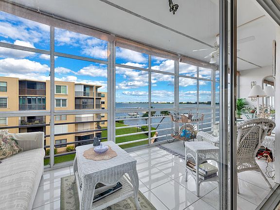 Fantastic direct Northeast intracoastal view to the Lake Worth Bridge from this top floor unit! Marina view from kitchen! Updated kitchen: white cabinets, granite countertops, white appliances. Tile floor in the kitchen and entryway. Newer carpet floor in the living room and bedroom. Updated bathrooms with neutral color tile floor, updated vanities. Large 25' enclosed patio with large sliding windows that can be opened to enjoy the coastal breeze! 2019 central a/c. Community laundry room, pool, clubhouse with exercise room, sauna, library, and game room. Pet friendly building: 1 pet allowed up to 30 lbs. Renting allowed immediately after purchase! Concrete restoration work is complete! Just minutes to get to area shopping centers, world class restaurants, and the beach!