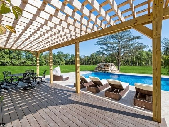 Country Living at its absolute finest in a beautiful, rustic, ranch home with in-ground pool and top- of- the- line equestrian facilities. 100+ acres of serenity and peace await in your own private sanctuary. One of the country's most beautiful locations. As you approach the home, your eyes will be drawn to the amazing two-story front entry porch crafted with log and beam architecture! Imagine yourself sitting here, watching nature go by and overlooking your gorgeous Ranch/retreat and leaving all your troubles behind. Enjoy your own private access to over one mile of the Lamington River offering kayaking, fishing and so much more. Barn with 27 matted stalls, indoor arena, organized heated/ac tack room, apartment, workshop, beautiful paddocks, and miles of beautiful trails. Imagine hunting, fishing, snowshoeing, kayaking, snowmobiling, cross country skiing and more without ever leaving your own paradise. This impressive home can be your true escape from urban life and allow you to live, work and play in an environment that is serene, private and just simply beautiful! The main residence boasts eleven well-designed rooms including three bedrooms, three and a half baths, two massive fireplaces, wood, tile and stone flooring. Additional living space in the finished lower level and two car attached garage for your vehicles should you ever need to leave the property. Horseback ride in the morning through the tree lined trails leading to the river. Then cool off and entertain beside the fabulous heated in-ground pool anchored with a custom-built pergola for poolside dining. There are both indoor and outdoor riding arenas here, and the well-equipped barn is just a short walk from the residence. Beautiful pastures and miles of trails throughout the property. The tree lined driveway allows you to take in the views before arriving at the home site, adding to the privacy. This sanctuary is perfectly situated only 45 mins from New York City, 25 minutes to Newark Airport and 2 minutes to Somerset Airport. Property is located next door to the highly rated golf courses of Fiddler's Elbow and the Trump National. Call for a private appointment today.