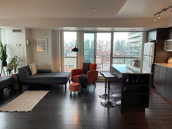 Beautiful, Bright & Spacious 2 Bed, 2 Bath Corner Suite With Breathtaking & Unobstructed Views Of The Cn Tower And Toronto Skyline! Open Concept Layout With 2 Large Balconies And Access From Every Room! Enjoy Entertaining With A Kitchen That Includes A Large Island And Stainless Steel Appliances. Ensuite Laundry & Storage Space. Steps To Transit, Shopping, Dining, & Entertainment. Brand New Floors Installed Throughout On Feb 25th!