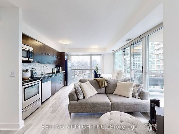 Live in one of Liberty Village's most desirable 2-bedroom corner suites. This sun-filled south-east corner unit showcases stunning lake views to the south and breathtaking skyline views of downtown and midtown Toronto to the east. The beautifully updated 744 sq. ft. residence features a functional 2-bedroom layout and two generous balconies, ideal for seamless indoor-outdoor living. Enjoy brunch on your oversized balcony or unwind with evening drinks while taking in spectacular city views including the CN Tower. Set within the sought-after Vibe building, this home delivers the ultimate Liberty Village lifestyle in a welcoming, neighbourly community. Perfectly located just steps from the King Street pedestrian bridge, with everything at your doorstep - Metro, No Frills, LCBO, restaurants, pubs, cafés, Starbucks, shopping, TTC, and nearby dog run. Parking and locker included and with a double rack bike rack in the parking spot, completing this exceptional offering in one of Toronto's most vibrant neighbourhoods.