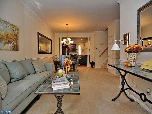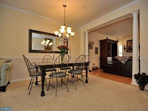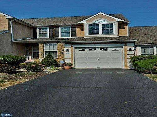 Beautiful Carriage style townhome located in quaint Wheat Sheaf Village. Recent updates include new windows, window treatments, stucco, hot water heater & marble gas fireplace. Home also features alarm, intercom & sprinkler systems. Open concept, custom kitchen includes granite countertops, huge kitchen island & 42" oak cabinets.Hardwood floors thoughout living area, crown molding and 9' ceilings. Perfect home for entertaining. New Anderson sliding glass doors off the kitchen leads to well maintained deck. First floor includes formal living room, dining room & powder room. Georgian pillars on first floor add a modern elegant touch. Second floor features Master bedoom suite with cathedral ceilings, 2 walk in closets, spacious master bath with soak-in tub & separate shower, custome window treatments & 2 additional bedrooms with ceiling fans, plus hall bath and second laundry (W/D included) Located conveniently to 422, Blue Rt, Turnpike, shopping & transportation.