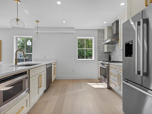 Introducing The Residences on White, an exclusive collection of five meticulously crafted new construction homes nestled at the top of Eagle Hill. This 3 bed 3 bath bi-level corner unit features an inviting and expansive open concept floorplan with lush greenery and charming architecture peeking through the sun-drenched bay windows. The well-appointed kitchen features timeless shaker cabinets, quartz waterfall counters and Bosch appliances including a wine fridge. Retreat into the impressive primary suite with a walk-in closet and a spa-like bathroom outfitted with a luxurious double shower and a deep soaking tub. A graciously sized guest bedroom and a modern guest bathroom complete the main level. Below, you’ll find a second spacious en-suite with a private entrance making this space a versatile option for guests or in-laws. Enjoy heated garage parking, in-unit washer/dryer, professional management, and a serene patio space perfect for unwinding or entertaining.