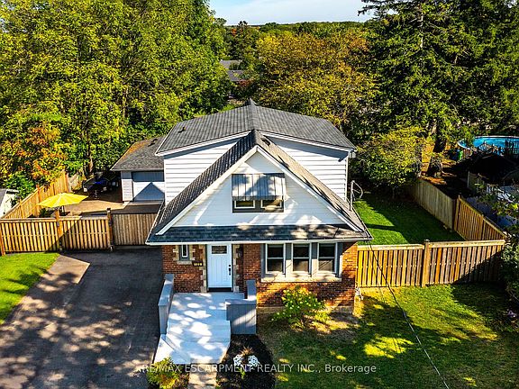 Classic Charm Meets Modern Comfort Steps from the Grand River. Welcome to 100 Wigton Street. This delightful 3-bedroom, 2- full bathroom home sits on a huge private lot in beautiful Caledonia. Overflowing with timeless style and thoughtful updates, this inviting home is perfectly situated for those seeking a peaceful lifestyle while enjoying proximity to the scenic Grand River, walking trails, and local parks. The local elementary school is just around the corner, and the high school is a short walk down the street. The large fully fenced yard is truly a showstopper with mature trees offering privacy and plenty of room for play, outdoor activities, gardening, or simply relaxing. Detached garage has built in work benches and storage as well as dedicated 60 amp electrical. New 8x12 shed was built this year. There is ample parking on the expansive 2400 sqft driveway. This home is move in ready. No renos or improvements needed. Key features include: 2,000 sqft of living space, Carpet-free, all lighting is LED, No rental items. Furnace and Water heater (2019), AC (2015), Bathroom Reno and upstairs flooring (2021) Fence (2020), Roof shingles, Sofit and Facia (2018), Windows are in excellent condition (2010). Check out the floor plans included with the pictures. This home will Wow you! As you enter, youll immediately notice the warmth of natural light filtering through large windows, highlighting the homes original details and welcoming ambiance. The open living room and dining room are an ideal space for gathering, boasting gleaming hardwood floors and classic trim that evoke a sense of history and character. Families will appreciate the 2 full bathrooms and proximity to local schools, playgrounds, and recreational facilities, while professionals can take advantage of easy access to commuter routes and amenities in town.