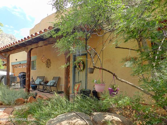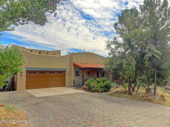 Rustic tri-level Santa Fe home in beautiful Pine Valley. 1 BR/bath on main level. The master suite is on the 3rd level with separate shower and tub with huge window looking out to the treetops, perfect to relax in after a busy day and a large closet. Many peaceful views of the trees out the many windows give lots of natural light. The bottom level has 2 additional rooms, one which can be used as an office, the third could be considered a BR with standard closet and sliding door opening to a covered patio. This home offers privacy on almost half a forested acre of natural native landscaping in Red Rock surroundings with views. Saltillo tile floors in the entry, kitchen areas and hallway. Wood stove in living room with large windows, vaulted ceiling and new slider door which opens to elevated wraparound deck. This canyon setting has abundant wildlife, including Elk, Deer, and Bob Cat. Home has deferred maintenance and needs some TLC, but it is perfect for someone who doesn't mind knocking out home improvement projects and wants to live in a peaceful area of dark skies and no traffic noise, yet only 5 minutes to shopping and other amenities. Seller recently installed a new paver driveway.
