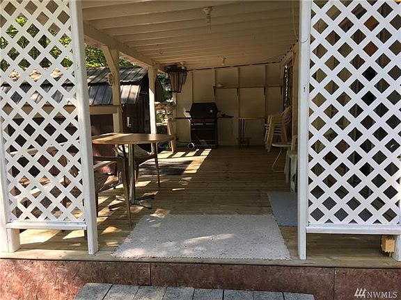 Amazing extra large corner lot with 1981 trailer at the Glen in Maple Falls. Beautifully slightly wooded lot w 2 driveways and fire pit. Many windows throughout trailer including big windows in kitchen to let in lots of sunlight. Covered deck has BBQ plumbed into propane tank with under deck storage. Storage shed with entrance on both ends and metal roof. Trailer has full sized bathtub for evening soaking. New water line w shut off valve. Extra storage in enclosed porch on back side of trailer.