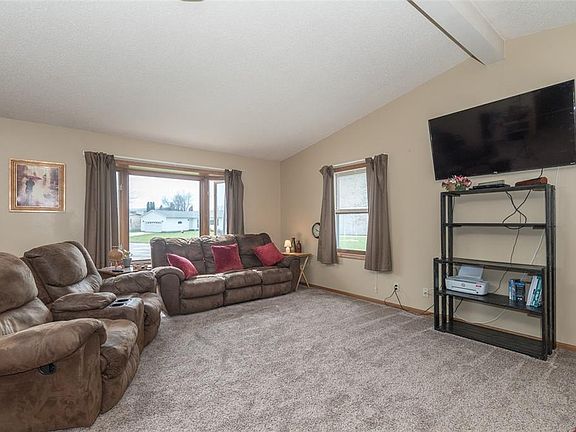 Solid brick ranch, with a 50-year steel roof, corner lot in Anamosa. What more could you ask for? How about total main floor living featuring: open concept living- kitchen area with new carpet, a sunroom/ family room that has a wet bar, 2 bedrooms, 2 ½ baths, and the laundry. If you do want to venture down stairs you will find another living space and two additional non-conforming bedrooms, the third full bath. Plus, a huge storage area. The seller has even paid to have mowing service for the entire 2020 mowing season. You can just move right in and enjoy your new home!