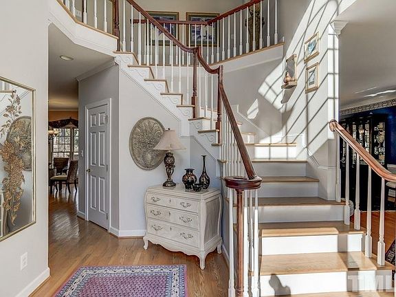 3 sided custom brick updated transitional in prime Cary location. Hardwoods on most of 1st floor. Large formals. Spacious family rm includes cathedral ceiling & wall of windows. Gourmet kitchen offers granite tops, center island, newer s/s appliances & tile b-splash. 1st floor office/bedrm w/ full bath. Master suite has renovated bathrm w/ oversized frameless tile shower & walk in closet. Bonus rm/4th bedrm. New roof 2014. Expansive brick patio + stone patio. Extensively lanscaped yard. Nice corner lot.