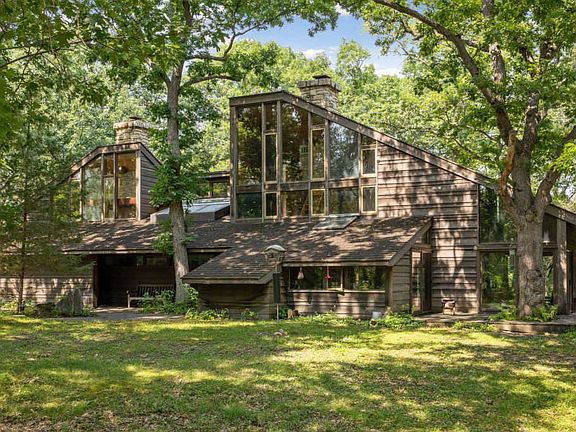One of the most amazing properties in Minnesota. An opportunity to own 40 acres of land in Sunfish Lake with approx. 600ft of lake shore on Sunfish Lake and 1900 ft including pond frontage. The home was built be renowned architect Michael McGuire in 1977 and designed to share interior and exterior spaces. Thereare 5 parcels included in the sale. The home sits on a peninsula surrounded by the lake and towering trees. The 40 acres have incredible topography and paths to make a one of a kind setting. There arealso development opportunities.