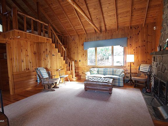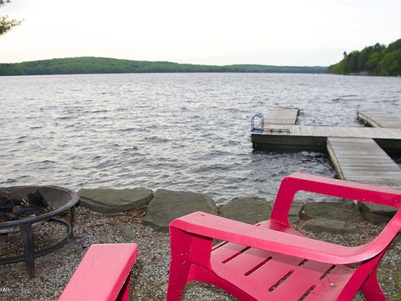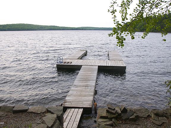LAKEFRONT on Lake Wallenpaupack. Charming Gumble 3 bedroom, 2 bath chalet features a large wrap around deck w/covered & screened in porch, lakeside patio w/firepit, bluestone FP in spacious living room/dining room, finished lower level, central A/C, boat dock and lake views from almost every room. Bring your boat - this lakefront is move-in ready!, Beds Description: 2+Bed1st, Beds Description: 1BedLL, Baths: 1 Bath Level 1, Baths: 1 Bath Level L, Eating Area: Dining Area