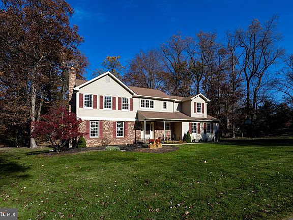 Welcome to 100 Wooded Eagle Court, nestled within the sought-after community of Silver Birches! Situated on a generous 1.2-Acre Cul-De-Sac LEVEL LOT, this property is a true gem, proudly affiliated with the prestigious Downingtown East School District, including the newer Uwchlan Hills Elementary School and STEM Academy. This charming home boasts an expansive floor plan and showcases a welcoming covered front porch, a convenient side-entry 2 car garage, not one but two cozy fireplaces, and hardwood flooring that graces most of the first floor. The finished basement, complete with an office, offers additional living space. The property's secluded backyard is adorned with a tree-lined backdrop and a small meandering stream, adding to the allure of this remarkable lot. As you step inside, you're greeted by a 2-story entryway with a turned oak staircase and hardwood flooring. The living room features a fireplace with a Vermont Castings wood stove insert, while the dining room boasts triple windows, accent molding and a French door that leads to the custom maple kitchen, featuring an island, sink overlooking the scenic rear yard, pantry closet, and dining area with a patio door that opens onto the deck. The adjoining family room with vaulted ceiling with skylights and fan, triple windows with transom and newer hardwood flooring, is complemented by a stunning El Dorado stacked stone fireplace. A convenient mudroom off the garage and a powder room complete the first level. Upstairs, the primary bedroom is a true retreat, showcasing a brick accent wall with a half-moon window, a cozy sitting area, walk-in closet, and a spacious bathroom with a vaulted ceiling, skylight, linen closet, soaking tub, and double-bowl vanity. Three more well-proportioned bedrooms, all equipped with ceiling fans, and a hall bath with a linen closet, round out this level. The finished basement offers a spacious recreation room, large closet, private office with a closet, and a large storage room with laundry facilities. These facilities can easily be relocated back to the first-floor mudroom as the sellers left the plumbing and dryer vent in place. Recent updates include a newer heating and air conditioning system and hot water heater, half-moon window, and closet window in the primary bedroom, as well as a storm door and hardwood flooring in the family room. The location is unparalleled in terms of convenience, with easy access to schools, the PA Turnpike, train stations, and major routes. Nearby, you'll discover lots of parks and walking trails, including Marsh Creek State Park and Struble Trail, shopping centers, ballfields, Eagleview’s Restaurant Row and Wegmans. Don’t miss this extraordinary opportunity to become a part of the desirable Silver Birches community.