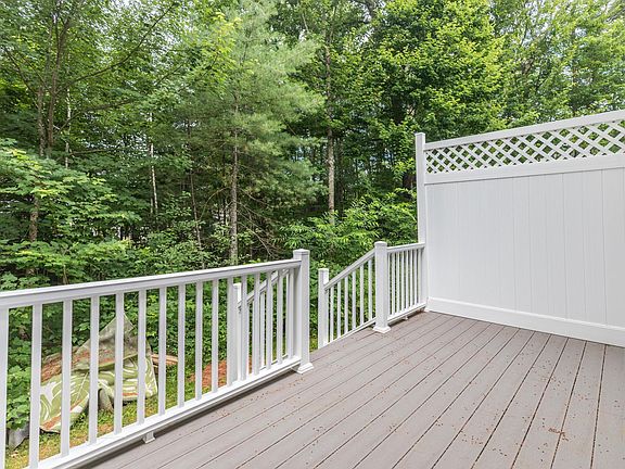 Active lifestyle? Experience maintenance-free living here in this classic townhouse at desirable Woodland Green. Outside features wood siding and a roof that was installed back in 2020. Relax on the private deck out back and enjoy your favorite drink and a book on a summer afternoon. There's a buffer of trees right out back as well, which gives the spot an even more private feel. Handy locked storage space is just outside the front door. Inside you'll love the spacious living room with warm, wood fireplace. Convenient half bath is just off this space. Combo kitchen/dining area is at the back of the unit and there are sliders off the dining area that lead to the deck out back. Stackable washer and dryer are included and located just off the dining area. Upstairs you'll find 2 ample bedrooms and a main bath. Natural gas fired baseboard heat throughout. Woodland Green is conveniently located not far from Route 202 and has easy access to downtown and the Spaulding Turnpike. This unit is very easy to view!