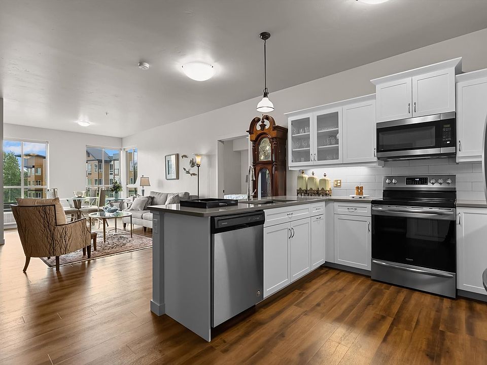 Welcome home to luxury living at the Woodlands, a 55+ senior living complex. Enjoy stunning views of the Swan Mountains and nearby pond from your private deck. This interior unit offers an open floor plan and a spacious kitchen with light gray quartz countertops and ivory cream soft-closing cabinetry and includes important upgrades: top/down blinds, bedroom blackout blind, accordion-style laundry door, cabinetry over the washer/dryer, separated light switches in the 2nd bedroom and kitchen, heater in the Primary bath, Samsung stainless refrigerator with ice/water maker, 5-burner stainless Frigidaire stove, glass shower door enclosure, an ADA shower handrail, and Electrolux washer/dryer. The 9.5-acre campus includes a walking path, a 7,000 sq. ft. Commons area featuring double-story library, a movie theater, coffee bar, an activity room, a lounge, workout room, a huge patio, and onsite garage parking with a storage unit. Enjoy stress-free living with great elevator access to all floors. The property borders Spring Creek to the rear and is encircled with a walking path for outdoor leisure and recreation, there are dog parks, walking access gates to Super-1 and Staples, an elevator; heated indoor parking garage with assigned parking space and private storage unit, plus snow removal for Woodlands Way and exterior parking lots. Interior Features Include: Commons Theater Room; Commons Fire Place; Commons Library; Air Filtration System; Workout and Sewing Rooms; Other Equipment: Central Water Softener; Road Surface Maintenance. Type Other: Security Lighting; Utilities Other: High Speed Internet. Call Tracey Hall at 406.270.9470 or your real estate professional for more information.