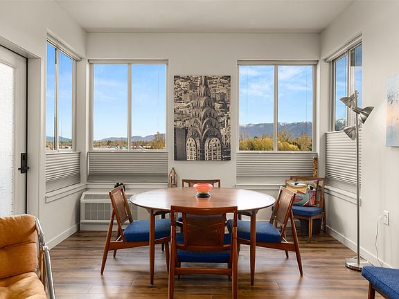 Easy living condominium on the 4th floor with incredible panoramic views from Whitefish Mtn Resort to the Swan Range. This 2 bed, 2 bath unit has high ceilings, open floor plan, lots of windows and a private covered balcony. The kitchen boasts quartz countertops, soft close cabinets and Amana appliances. The primary bedroom has a large walk-in closet and shower. It is separated from the guest bedroom and laundry area. There are also upgraded up/down blackout shades. Heated garage and storage unit. All of this in a vibrandt community designed specifically for those aged 55 and over.
