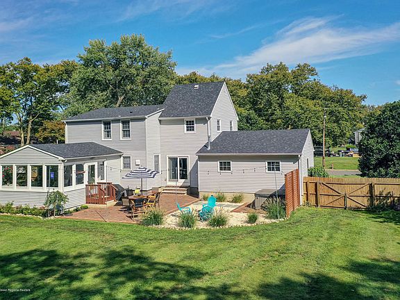Updated 3 BR colonial is ready to become your home sweet home. Drink coffee or sip wine while relaxing on the 3 season porch enjoying the large private, park-like backyard that includes a basketball court, hot tub, patio and fire pit area in River Plaza's secluded Minnisink Neighborhood with ample space to add a pool...walking distance to Red Bank, close to schools, shopping, train, and beaches. Updated bathrooms, freshly painted rooms throughout, and kitchen with granite countertops. Recessed lighting, hardwood floors, gas fireplace, 2 car heated and insulated garage with storage above. River Plaza Elementary School, Thompson Middle School, and Middletown High School South. You won't want to miss this one!
