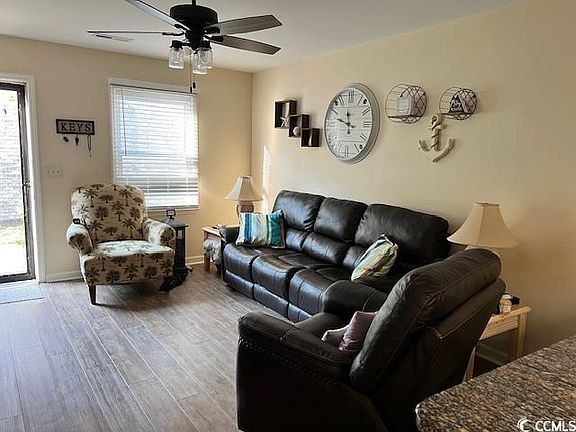 Attention Shagger's & investors! Don't miss out on this 2 bedroom, 2 bath all brick townhouse that is walking distance or a short golf cart ride to the shag clubs, restaurants, shopping, grocery store & Lowes Hardware. Townhouse features luxury vinyl plank flooring downstairs, granite countertops, stainless appliances, awesome back patio with pergola. There is ample storage with pull down stairs for extra items. Townhouse comes furnished except for a few items.