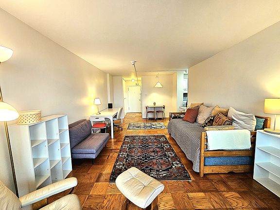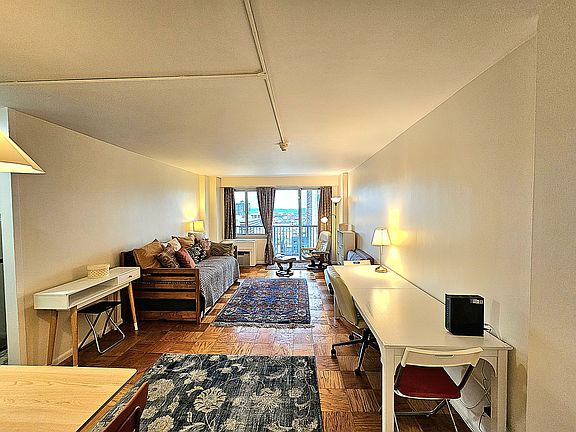 Welcome to the top floor of the highly coveted University Towers. A rare opportunity to rent a fully furnished studio apartment in one of New Haven's most desirable buildings WITH HOT WATER AND HEAT INCLUDED! Perched on the 17th floor, this bright and airy studio offers breathtaking east-facing views of the Yale skyline, East Rock Park, and sweeping vistas of Long Island Sound. Step out onto your private balcony and soak in the scenery, whether it's your morning coffee with a sunrise or front-row seats to New Haven's spectacular Fourth of July fireworks show. Residents enjoy access to a seasonal outdoor pool and on-site laundry facilities. With its unbeatable location just steps from Yale, vibrant downtown dining, shops, and cultural attractions, this studio is the perfect blend of comfort and convenience. Available for a yearly lease, fully furnished and move-in ready, tenant must submit application to co-op board for approval. Don't miss your chance to live above it all! No Smoking