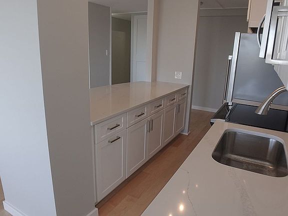 A must see in downtown New Haven living on the 17th (Penthouse) floor of University Towers! Newly, entirely remodeled 2 bedrooms, 2 full bathrooms, spacious closets. 2 blocks from YNHH and Yale University. City and harbor views from your living room and balcony, walk to train! 24 hour doorperson, seasonal pool. Monthly fee (50% tax ded.) includes property taxes, heat and hot water.