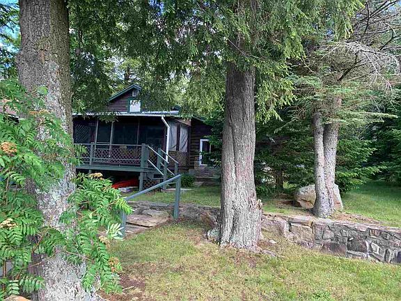 Imagine sitting on your screened in porch, watching the loons swim right in front of you! You don't have to imagine! Come see for yourself the serenity and beauty of the coveted Lake Ozonia. This property has a double lot. Waterfront is 100+feet of stone breakfront by 175 deep. Across the road is a nicely wooded parcel about an acre. The well maintained main cottage has a full kitchen, 2 living rooms (one with a propane fireplace that warms the entire cottage) ,2 bedrooms, a full bath, large storage room and the enclosed porch overlooking the lake. An Adirondack boat house has one slip and a utility room with a shower and W/D. On the 2nd floor there is a large master bedroom and half bath. The sliding full length glass doors open onto a 27 x 16 deck with another beautiful view of the lake. There are 2 garages, one is oversized and the other houses the workshop and storage. The cottage was once lived in year round and needs a new circulating pump on the water heating system. The road is plowed year round. Owners are willing to consider carrying contract. Fishing, boating, gatherings, good spot to relax.. Come see for yourself!