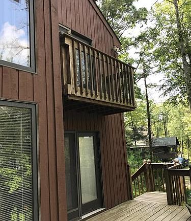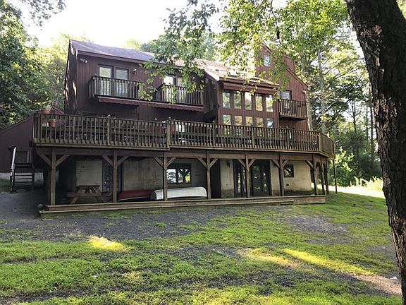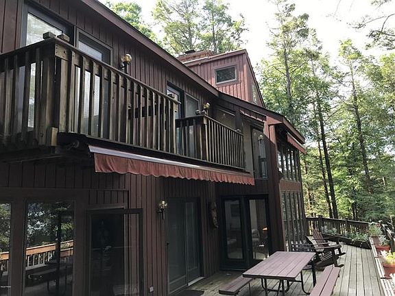 RARE OPPORTUNITY LAKEFRONT home with 322' of Lakefront and 8.5 acres of land surrounding the home which consists of the house (1.5 acres) and 3 additional parcels contained in this listing. This Cedar sided home has 5 bedrooms all with a view of Lake Wallenpaupack, 4 of which have private balconies overlooking the lake. 3 full baths, 2 half baths and a split bath ie: (tub sink, toilet sink), servicing two of the bedrooms. The attached 23 x 29 - 2 car garage is great for boat and car storage. Consists of two garage doors plus workshop area and lower entrance into basement. See Additional remarks...