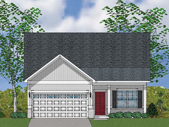 Two-story floor plan with two bedrooms and two-and-one-half bathrooms. The primary suite features a spacious walk-in closet and a garden tub. Gourmet kitchen includes a corner pantry with spacious center island and is open to the eat-in area with access to the patio. Upstairs bedroom is a guest suite with private bath. Laundry room, porch, and a two-car garage. Options include a fireplace in the family room, box ceiling in primary, and extended front porch.