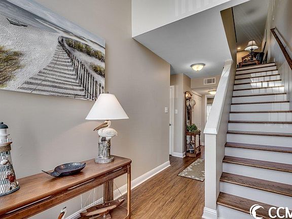 Welcome to this must see townhouse style condo just a golf cart ride to the beach! This beautiful 2 bedroom, 2.5 bath has been renovated and features an unique floorplan with the bedrooms and full baths on first floor and living, kitchen and dining on second floor. Each bedroom has a private bath, private patio and plenty of closet space. Kitchen features beautiful backsplash, upgraded cabinets, granite countertops and opens up to living room and dining room. This spacious floor plan features LVP in foyer, living, dining and kitchen with new sliding doors in living room and bedrooms. There are two exterior storage closets on each floor for your convenience. The Pines is a quiet, golf cart friendly community with an outdoor pool, located close to North Stand Shopping Center, restaurants, Main St. and all that North Myrtle Beach has to offer. Perfect for a primary residence or vacation home, sorry no short term rentals allowed. Don't miss out on this one as it is the only one for sale in The Pines.