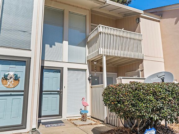 Absolutely stunning 2 bedroom 2 1/2 bathroom furnished townhouse just a short golf cart ride to the beach, and yes, the golf cart is included! This is the only unit in the subdivision with its own private, screened patio complete with fire pit and bar! The living room downstairs has updated porcelain tile, fresh paint, new light fixtures and boasts a great layout with formal dining room that leads to the front patio. Additionally, the upgraded front and rear French style doors have inset window treatments! Upstairs, the front bedroom has its own covered balcony, vaulted ceiling, and bathroom! The master bedroom is spacious with two closets and its own ensuite bathroom. Just east of Highway 17. Walking distance to shops restaurants, and grocery store!