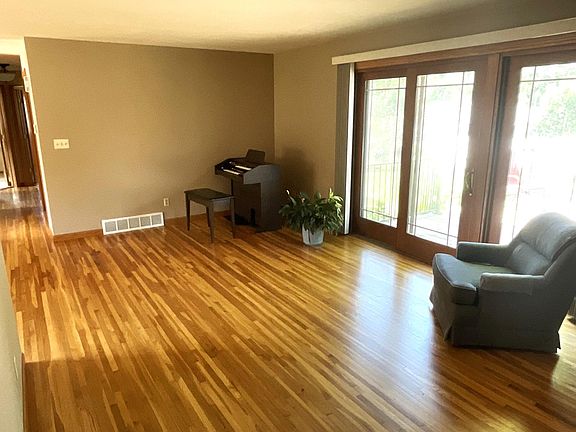 Very appealing from the outside and the inside. Lovely, well-kept 3BR 3-bath Rambler on pretty SW lot in quiet neighborhood. Has hardwood floors, newer kitchen with appliances, dining room opening to both kitchen and living room, primary bedroom suite with walk in closet, main floor office or 4th bedroom and laundry hook ups on main floor and lower level. Has spacious rec room and game room down, as well as workshop and storage areas. Gorgeous deck and back yard with privacy fence, steel siding with brick accent, three-year-old roof, newer furnace with central air and attached garage. It's move in ready!!