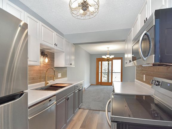 Affordable condo living with a park-like setting...Are you looking for easy living, then this condo may be for you!  This unit is located on the top floor and boasts 1136 square feet of living space. This space has just been remodeled including new flooring, fresh paint, and new fixtures.  The galley kitchen is super functional and efficient.  The dining and living room spaces are open and feature a large picture window and patio door leading to your private balcony.  The master bedroom has an attached en-suite with a walk-in shower.  A second bedroom, full bathroom, and laundry room complete this unit.  On the lower level is a large community room and your large and private storage area.  This condo also comes with a one-stall garage.  The monthly condo fee is $354.80 and includes all lawn care, snow removal, exterior insurance, heat, water, sewer, garbage, and basic cable!  Call your favorite REALTOR® to schedule a private showing.