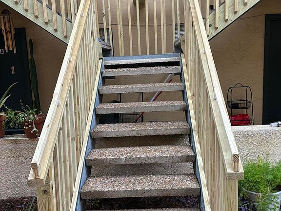 This is a 2 bedroom & 2 full bath APT. The Bldg only has 2 stories. This Apt is on the 2nd floor. Inside has been upgraded in many areas! Cleaned & has been painted. Everything inside works great per the Handyman's Inspection. Newer HVAC & Newer Hot Water Tank. Pale Gray walls. Entry area as you walk in. The Kitchen has Black color Appliances. Dishwasher, Refrigerator & Range/Oven & Pantry closet.