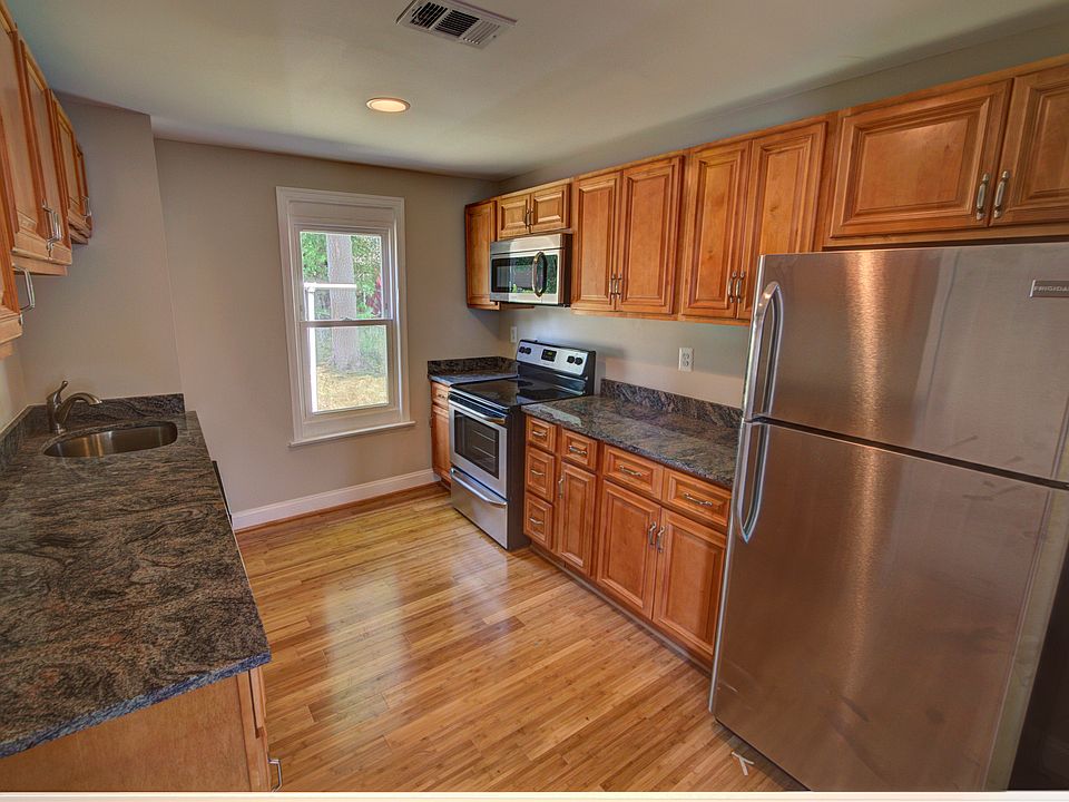 Tenant Requirements: Credit Score 650+, income $66K+. This detached house was completely renovated in 2013. It features an open layout with hardwood floors and lots of windows for great natural light. The kitchen has stainless steel appliances, granite counters, and solid wood cabinetry. Small for a house, but bigger than most apartments. Cats and Dogs under 20lbs allowed with a fee. No smoking. Tenant's responsibilities: all utilities, lawn maintenance, gutter cleaning. Tenant requirements: Credit Score 650+, income $66K+
