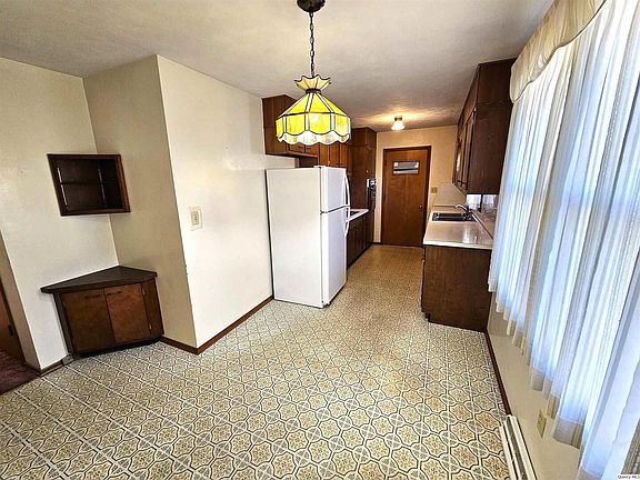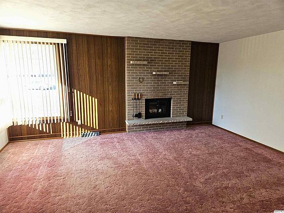 Nice brick ranch on large corner lot. Features include entry foyer, sunken living room having brick-laid wood fireplace with insert, kitchen / dining area, finished basement with L-shaped rec area and half-bath, and 2-car attached garage with workbench. Recent updates include insulated replacement windows, new high-efficiency furnace and central air 2019, new refrigerator 2020, all ductwork cleaned 2023, roof replaced 2023, and new overhead garage door opener 2024.
