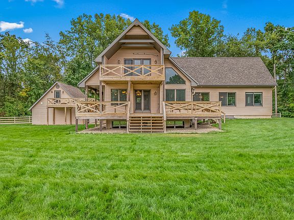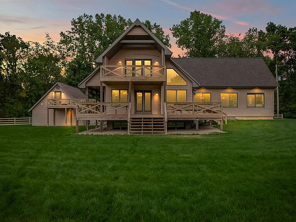 WOW! This is the once in a lifetime home you have been waiting for! Complete with 7 bedrooms and 4.5 bathrooms, this home has so much room for the entire family. Drive down the 2,000 ft driveway to your very own serene 16+ acre oasis. Walk in and fall in love with the stunning cathedral ceilings, beautiful woodwork, abundance of natural light and custom spiral staircase. Additional features of this home include a fully functioning sprinkler system, cozy electric fireplace, pond surrounded by sycamore trees, Anderson Windows and storage galore. The home is heated & cooled by an extremally efficient geothermal open loop system. Do not forget about the stunning views off the wrap around deck leading to a deck bridge to the studio above the garage. Call today for a personal showing on this stunning home!