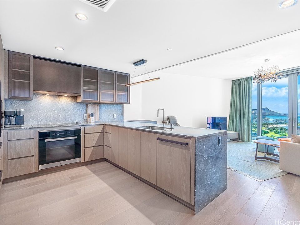 Luxury condominium "Koula" located in the heart of vibrant Kakaako/Ward Village with close proximity to Waikiki. Fully furnished, move-in ready 2 bedroom, 2 bathroom unit with 2 lanais. Miele appliances and washer/dryer in unit. An expansive open-air lobby and abundant amenities include a pool, cabanas, barbecue pavilions, sunset lounge dining and bar, grand dining room, fitness center and more! Close to restaurants, Whole Foods, and Ala Moana Beach Park. Additional security provided by Ward Village courtesy patrols. Extraordinary modern island living is waiting for you!