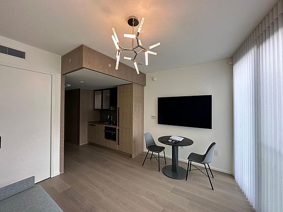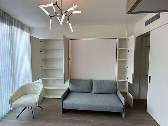 This is a tastefully furnished studio in the heart of Ward Village. Move-in ready and fully furnished unit with $50k worth of upgrades including luxury Italian furnishings which includes a motorized queen Murphy bed/love seat with built in storage cabinets. Bed goes up and down with a push of a button. Motorized and programable Silhouette curtains open up to a Juliette balcony and allows you to adjust the amount light in your unit. A dining table and chairs provides a comfortable spot to work and enjoy meals. This unit is also equipped with Miele electric range, retractable hood, speed cooker/oven, built-in dishwasher, built-in refrigerator, stacked washer/dryer, central AC, 65" Sony OLED TV w/ Apple TV, upgraded Toto Neorest toilet, engineered hard wood floors, and marble countertop. Koula boasts first-class amenities such as a lap pool, pool cabanas, 2 Jacuzzis, a fitness center, spa, sauna, steam showers, a Great Room with billiards, a children's play area, BBQ areas, a grand dining room for larger gatherings, and outdoor lounge areas. There's also an on-site Resident Manager, 24-hour Building Security, Separate ramp and secured entry for resident parking, Additional security provided by Ward Village Courtesy Patrol, Surfboard and bike storage available. Condo is centrally located in the heart of Honolulu in the desirable Master Planned community of Ward Villages in Kakaako. Situated in between the Ward theater and Victoria Ward Park, you will be in walking distance to popular restaurants, coffee shops, retail stores, Whole Foods, Ala Moana Beach Park, the Kakaako Saturday farmer's market, and the Kewalo Basin food trucks! Rent is $2,600/month (includes water, sewer, TV cable and internet). Minimum 1-year lease. One full size secured assigned covered parking on the same level as the unit. No smoking. No Pets. No pets and no smoking allowed.