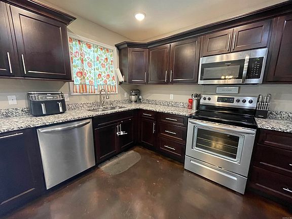 Lovely brick home in Donlee Ridge addition in Paragould AR. This one is low maintenance, low utility cost, smoke-free and pet-free. Stained concrete and neutral paint throughout, lots of recessed lighting. The Primary Suite is on one side of the home, with remaining bedrooms on the opposite side. In the Primary Suite there are 2 walk-in closets and double vanity. The kitchen is laid out well and has a pantry closet, granite countertops and is open to the dining. There are 2 additional hall storage closets and the laundry room is near the Primary Suite and garage. The living room has a tray ceiling and recessed lighting. The backyard patio is accessed right off the kitchen. With the right offer seller would leave the refrigerator, washer and dryer! The Vivint equipment is owned by Seller and transferable to new owner. It has window break sensors, two exterior cameras, door bell camera, smart thermostat, smart lock and control panel. Controlled from the app.