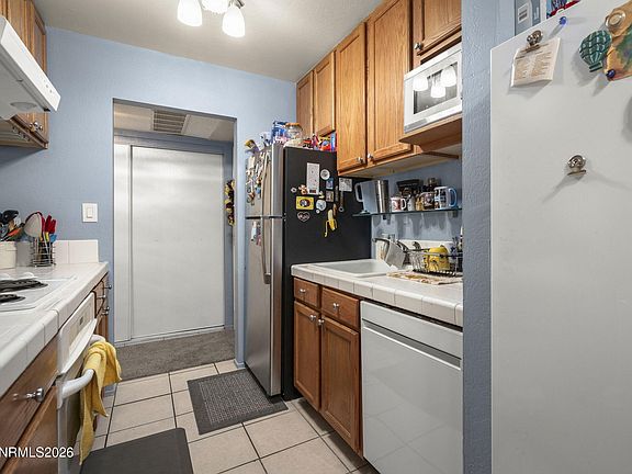 Bright top-floor 2-bedroom, 1.5-bath condo offering comfortable, low-maintenance living. Features include tile flooring and countertops, a breakfast bar, an in-unit washing machine, and an upgraded bathroom. Enjoy a covered deck, a generous private storage unit, and convenient elevator access. HOA dues cover heat, water, hot water, garbage, pool maintenance, snow removal, and insurance. Ideally located in Southwest Reno near Virginia Lake, shopping, dining, casinos, and the airport. On-site laundry available.