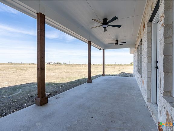 Experience the ultimate in comfort and style with this custom-built, 2024 rock home situated on 2 acres just west of Lockhart. This thoughtfully designed residence offers 4 bedrooms, 3 full baths, and generous living spaces, including 2 living rooms and 2 dining areas. The oversized 2-car garage features automatic openers and a spacious storage closet for added convenience. Relax and take in the picturesque views of the surrounding ranches from the covered front and back porches. The gourmet kitchen is equipped with granite countertops, custom cabinets, a stylish tile backsplash, and an island with a sink, seamlessly connecting to the breakfast area. The luxurious primary suite is a true retreat, featuring two walk-in closets, a large soaking tub, a separate shower, dual vanities, and a dedicated makeup area. The property is fully fenced with a gated entry. Its prime location offers easy access to major attractions, including a 30-minute drive to Austin-Bergstrom International Airport (ABIA), Circuit of the Americas (COTA), and Tesla, as well as a 25-minute drive to the San Marcos Outlet Mall. This home perfectly blends modern convenience with serene countryside living—don’t miss the opportunity to make it yours!