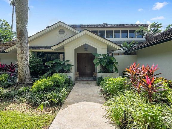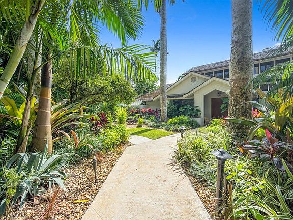 Welcome to your own tropical paradise with this captivating Breakers West estate home on .73 acre on private cul-de-sac street. With 3 large Bedrooms, bleached paneled wall Office, 4.5 Baths and oversized 2-car garage, this beautiful home has a casual yet sophisticated design and endless garden views from every room. Spacious Great Room and Dining Room share the 2-sided coquina stone fireplace and both open to the enormous covered loggia and pool area. With an updated kitchen designed by a true chef, you can enjoy this amazing kitchen with both function and style. Professional True double glass door stainless refrigerator, 2 GE Cafe wall/convention ovens, Gaggenau induction cooktop with vented hood, 2 dishwashers, 2 oversized TopZero sinks and butcher block countertops.