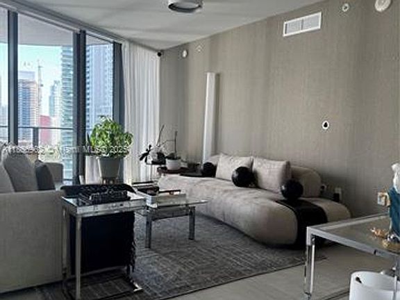 Experience luxury living in the prestigious Flatiron Brickell with this spacious 2-bedroom, 2.5-bath residence on the 23rd floor, boasting stunning skyline and Bay views through floor-to-ceiling windows. The open floor plan features Italian-made custom cabinetry, premium Miele appliances, and marble countertops, with a gourmet kitchen flowing seamlessly into the living and dining areasperfect for entertaining. The primary suite offers a walk-in closet and a luxurious bath with a soaking tub and glass-enclosed shower. Enjoy the convenience of two express elevators, two assigned parking spaces, and valet service. Residents have access to unmatched amenities, including a 64th-floor rooftop with pool and restaurant, fitness center, steam room, sauna, lap pool, theater, and billiards room.