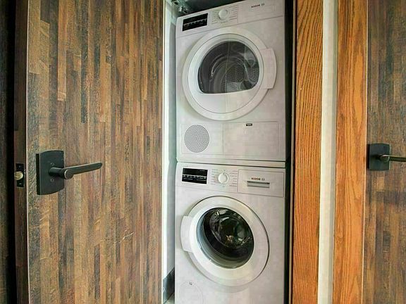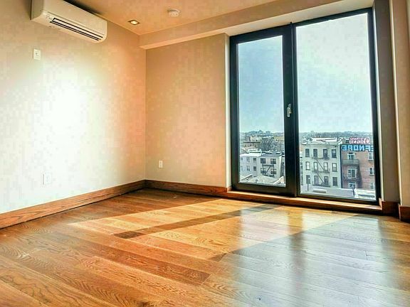 JUST IN TIME for Spring 2021! REQUIRED for MOVE IN: just 1st month rent + 1 month security deposit $2850 Tenant can pay $2495 ea month Modern elevator building, with stunning views of the neighborhood and city skylines! Perfect for two roommates or a couple looking for a little extra space to use as an office. Apartment features IN-UNIT washer dryer, DISHWASHER, stainless steel appliances, PRIVATE BALCONY off of living room, extra closet space, CENTRAL AC, GYM, parking garage. not to mention TWO awesome shared rooftop spaces with stunning views of Manhattan skyline. NO brokers fee! Available (earliest) 5/1 TO schedule a showing please email Lauren with your move in date as well as availability for showing!