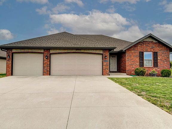 Nestled in the desirable Patriot Place subdivision within the sought-after Logan-Rogersville School District, this beautiful home offers a fantastic opportunity. Conveniently located at the back of a quiet neighborhood on a large corner lot, it provides easy access to Highway 60 and is just a short drive from Springfield's shopping, dining, medical, and entertainment options. The thoughtfully-designed floor plan spans nearly 1,700 square feet, all on one level, with 3 bedrooms, 2 full baths, and a 3-car garage. The kitchen features rich knotty alder cabinetry, granite countertops, a center island with bar top seating, and a spacious dining area. Special touches include an inviting foyer, engineered hardwoods throughout the main areas, a NICE walk-in pantry conveniently located adjacent to the kitchen and garage, and a mudroom with bench seating and coat hooks. Plus, freshly painted interior walls throughout much of the home! The sizable living room boasts a vaulted ceiling and ample natural light. The primary suite is conveniently situated next to the laundry room and offers a generous closet and a nice master bath with a walk-in shower and granite-topped vanity. Two additional bedrooms share a second full bath with granite countertops and tiled floors. Outside, the spacious backyard features a fire-pit seating area and a new wood privacy fence, perfect for relaxation and enjoying the peaceful farmland views. With an ADT security system in place (small monthly monitoring fee), fiber optic internet availability, NO Neighbors on two sides, and the proximity of Rogersville Primary School AND all Springfield has to offer, this home truly has it all. Don't miss out....call today for a private showing!