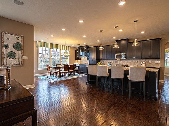 Fantastic, aesthetically upgraded former Olsen model home with elegance and charm. Enter through the covered porch into a hardwood foyer, with stylish living and dining areas, opening up to a bright and spacious family room, flowing into the eat in area, bright morning room, and a state of the art kitchen, attached to a private den and mud room. Master bedroom suite is luxurious with two enormous walk in closet. Two secondary bedrooms share a bath, and one guest suite has a private bath, finished lower level has a wet bar, media room, and a full bath. Gorgeous landscaping, with landscaping lights, beautiful low maintenance deck