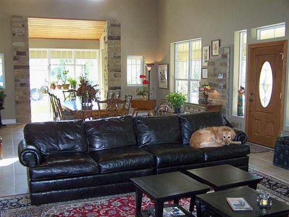 This fabulous property sits on over 32 acres of land. It has been lovingly landscaped with hundreds of varieties of trees and flowers including a list of fruit as well as berries and grapes. There is a large barn. Lots of paved paths and paved sitting areas. Also a large covered patio with a hug firepit and a guest house with a nice size kitchen/ den plus 2 bedrooms and a full bath and laundry. The main house has 3 bedrooms and two baths and a fantastic den with a soaring celing. Kitchen has solid suface counters and stainless appliances plus loads of storage space and a large office area.
