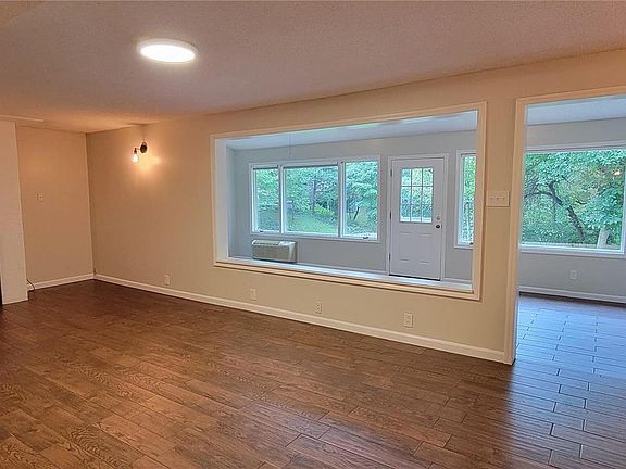 Charming home nestled in a quiet private setting. Gorgeous wood floors flow throughout the home. Eat in kitchen features some stainless steel appliances, plenty of cabinets, and is accented with exposed brick. Huge living room has a gas fireplace with brick surround. Gorgeous sunroom with endless possibilities. Tons of natural light shines in through the wall of windows. Spacious bedrooms, and bathroom features a smart mirror. Lots of recent updates! Freshly painted! Oversized 2 car garage has loads of room for storage.. Home is situated on a massive fenced in lot that extends past the fence. Don't let this one pass you by!