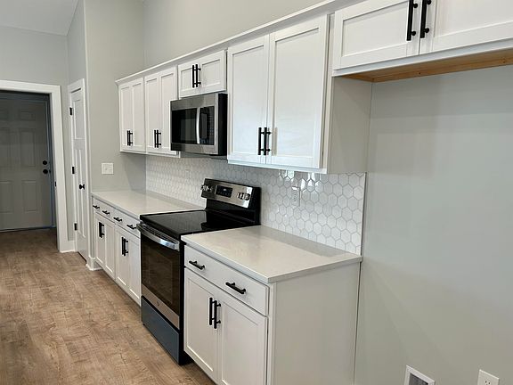 New Construction located within a golf cart ride to Downtown. This home features Hardi Plank siding, Luxury Vinyl Plank flooring throughout, Quartz countertops in the kitchen and baths. The master bedroom has vaulted ceilings as well as 3 closets. The master bath has two separate vanities a walk-in shower and a free standing tub. The laundry room is very spacious and has two closest for storage. The large two car garage also has a workshop/storage area.