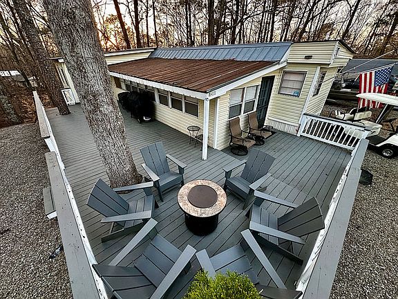 Final price drop – this is your chance to own a fully renovated lake retreat under $200K. Turnkey with golf cart, tools, furniture, and more. Welcome to your fully renovated lakeview retreat in Cushing Memorial Park—a private, gated community nestled along the shores of Lake Allatoona. This 2-bedroom, 1-bath cabin-style mobile home offers stunning lake views, modern updates, and a cozy pine-walled interior with all the charm of a North Georgia cabin. Property Highlights: • Warm pine walls and cabin feel throughout • King bed in the primary bedroom • Second bedroom comfortably sleeps 8 with three queen beds and a futon • Fully remodeled bathroom (2024) with new plumbing • Mini-split HVAC system for year-round comfort • Updated kitchen with appliances (2019) and oven (2020) • New siding and roof (2018) • Beautiful natural light and large windows throughout Outdoor Living: • Lake views from the home and deck • Expansive deck with poly Adirondack chairs and a fire ring • Pellet/gas combo grill and Blackstone griddle included • Partial basement for storing boating, fishing, or outdoor gear • Large private parking area with room for a boat, jet ski, and multiple vehicles Recent Improvements (Over $50K since 2019): • 2018: New siding and roof • 2019: New appliances, mini-split HVAC • 2020: Oven installed, new electrical panel in master closet • 2021: Driveway replaced with proper underlayment • 2022: Deck refinished • 2024: Complete plumbing replacement and full bathroom remodel • Septic tank pumped in November 2024 Ownership Details: • Annual Membership Fee: $945 • Annual Lot Fee: $715 • 2025 Trailer Taxes (Paid): $355 • 2025 Fees and Taxes Fully Paid • Located on Army Corps land – no full-time residency allowed • Perfect for seasonal use: summer, weekends, or family retreats Included in the Sale: • Fully furnished – king and queen beds, futon, dining furniture, deck furniture • All plates, cups, cookware, utensils, appliances, and grills included • Golf cart, leaf blower, pressure washer and tools in basement. Just bring your clothes and a cooler – everything else is ready to go!