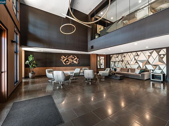 Stunning TOP FLOOR contemporary condo, located in DOWNTOWN Lafayette just steps from great restaurants, shopping and BART. Engineered hardwood floors, open floor plan and soaring vaulted ceilings highlight this newer build. Beautiful kitchen featuring dark cabinets, stainless steel Kitchenaid full size appliances, gas cooktop, quartz countertops, glass tiled backsplash and three seat breakfast bar. Elegant dining area gives way to a natural light filled living room with oversized windows and soaring ceilings. Spacious en-suite bedroom with walk in closet, tiled floor bathroom, dual sink vanity and shower over tub. Attached water closet and additional sink create a half-bath experience for guests. Amenities include interior common area, outdoor lounge area, bike storage, AV battery stations and secured parking garage.